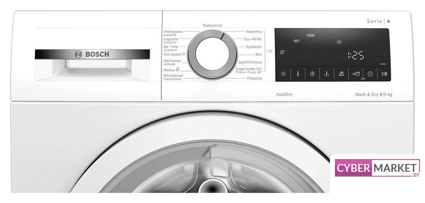 отдельностоящая, стирально-сушильная машина, загрузка до 9 кг, отжим 1400 об/мин, глубина 59 см (с люком 64.9 см), энергопотребление (new) E, 14 программ