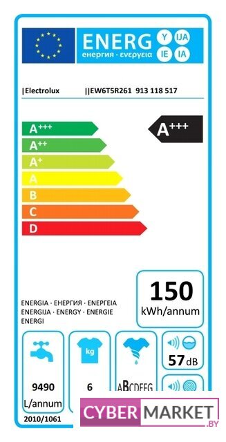 | Расход электроэнергии за цикл | 0.8 кВт·ч |