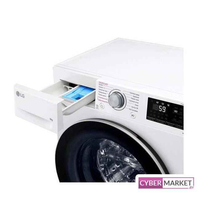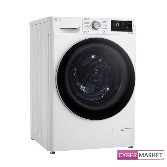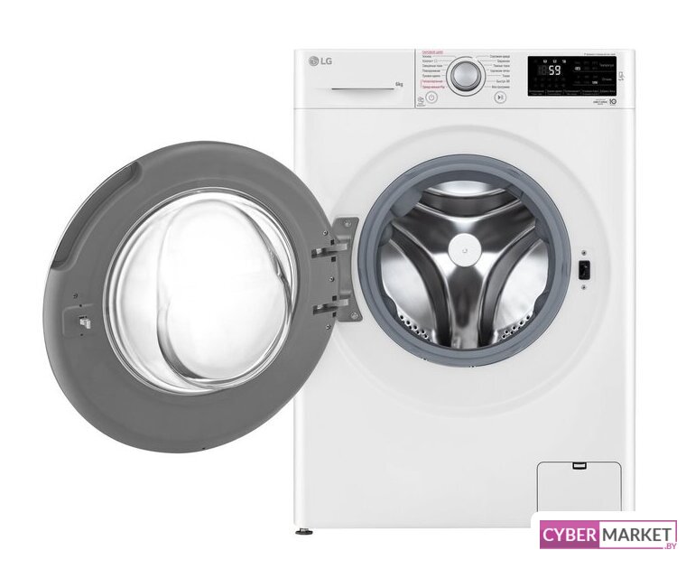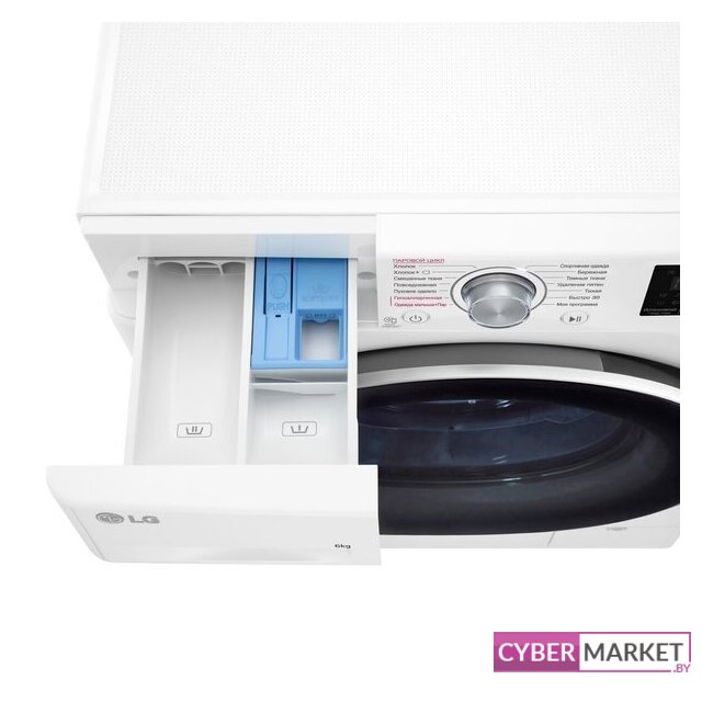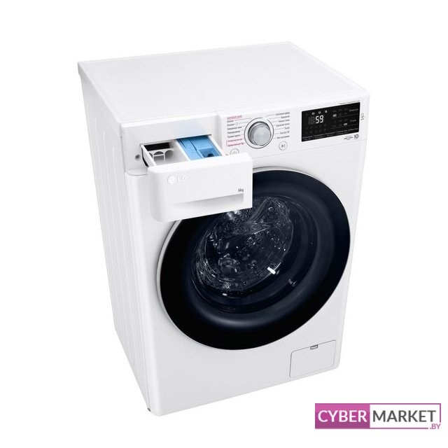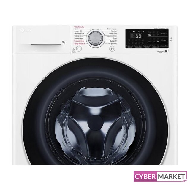 отдельностоящая, стиральная машина, с паром, загрузка до 6 кг, отжим 1200 об/мин, глубина 45.5 см (с люком 49.5 см), энергопотребление A, прямой привод, 14 программ, 6 Motion (LG)