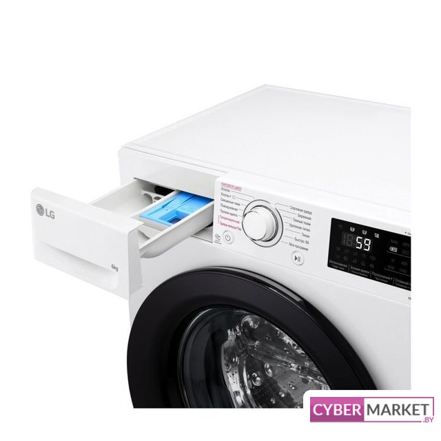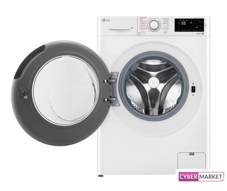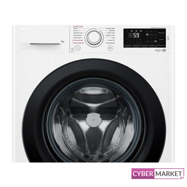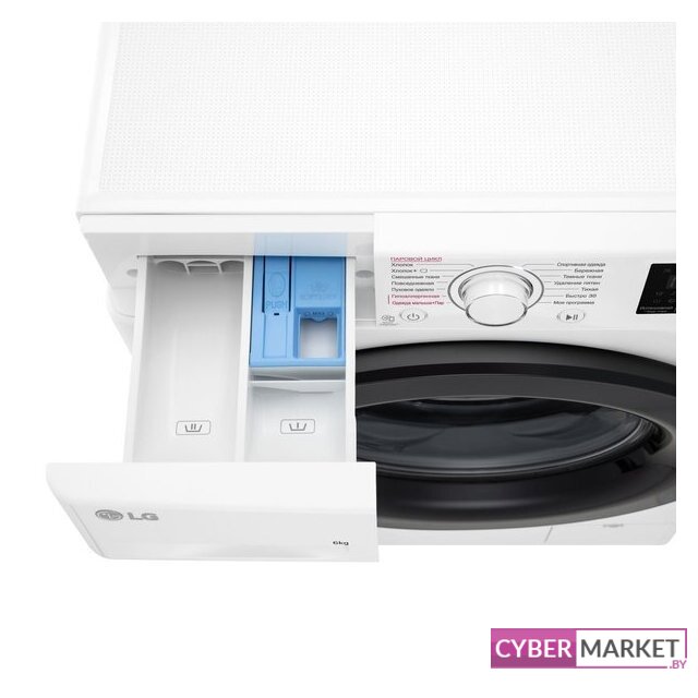 отдельностоящая, стиральная машина, с паром, загрузка до 6 кг, отжим 1200 об/мин, глубина 44 см (с люком 50 см), энергопотребление A, прямой привод, 10 программ, 6 Motion (LG)