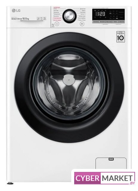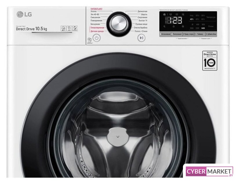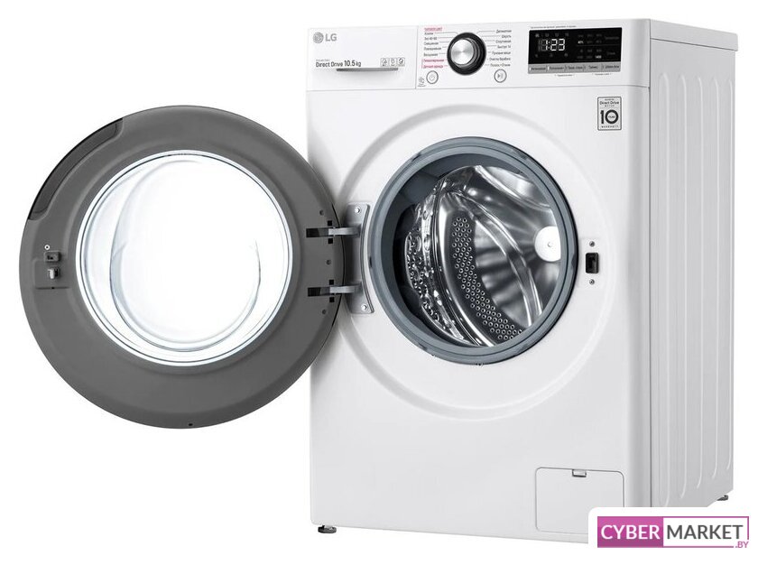 отдельностоящая, стиральная машина, с паром, загрузка до 9 кг, отжим 1200 об/мин, глубина 47.5 см (с люком 53.5 см), прямой привод, 14 программ, AI DD (LG)