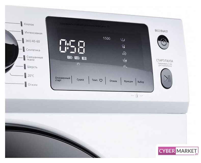 | Все программы | ХлопокИнтенсивнаяЭКО 40-60СинтетикаСмешанные тканиШерсть20°ОтжимОбработка паромГиппоаллергеннаяВоздушная стиркаСушкаЭкспресс 15'Стирка и сушка1 часМой режим |