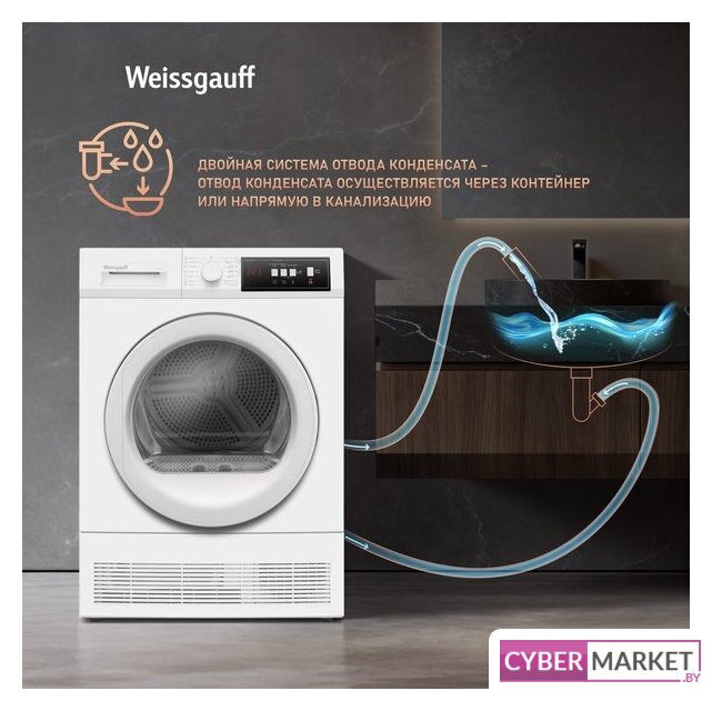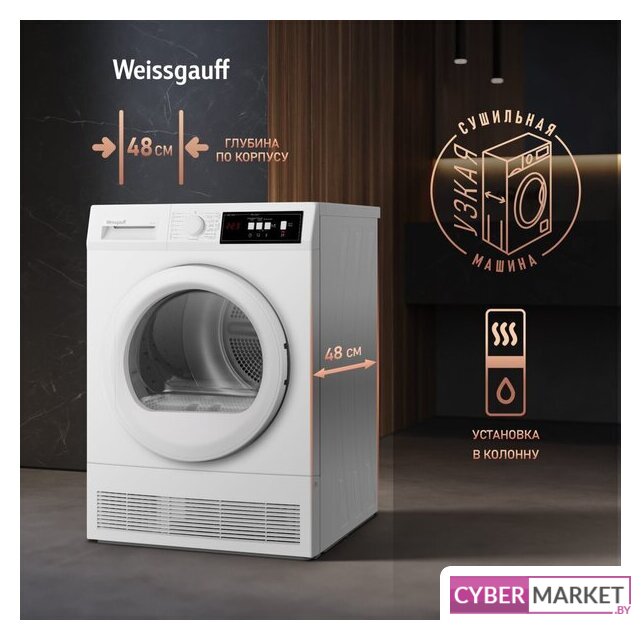 отдельностоящая, сушильная машина, сушка: конденсация с тепловым насосом, загрузка до 7 кг, глубина 47 см (с люком 54.5 см), энергопотребление A+, 15 программ