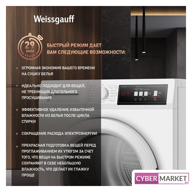 | Все программы | Освежение, Рубашки, Экспресс, Стандартная сушка, Таймер сушки, Сушка по остаточной влажности, Деликатная сушка, Сушка под утюг, Быстрая сушка, Спортивная одежда, Постельное белье, Полотенца, Джинсы, Смешанное белье, Экономичная сушка |