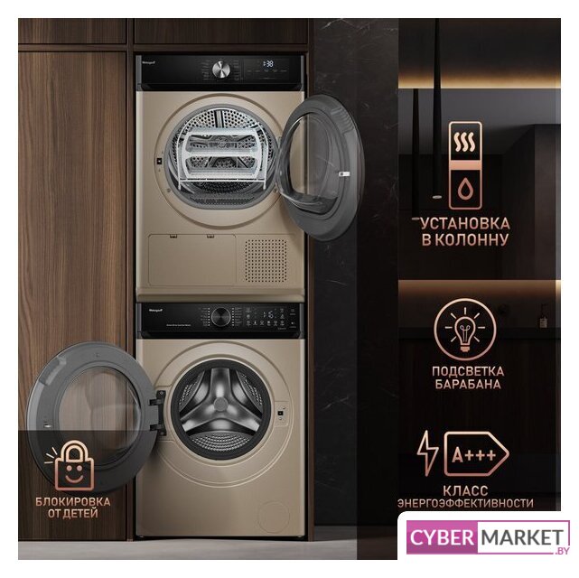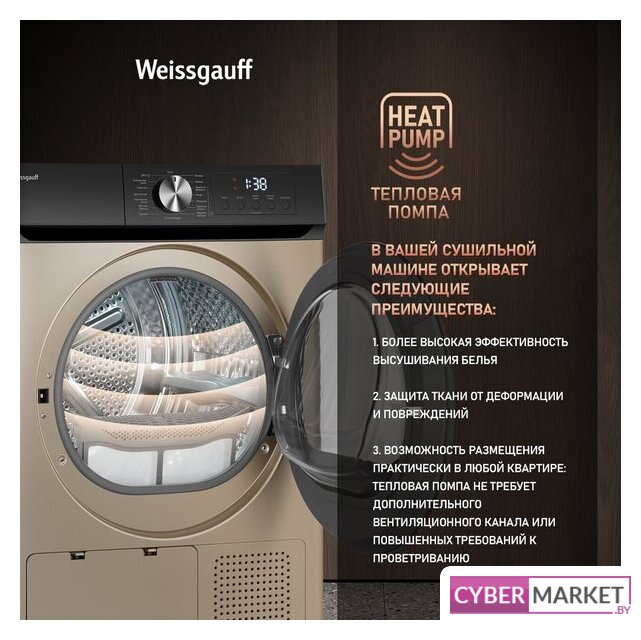 отдельностоящая, сушильная машина, сушка: конденсация с тепловым насосом, загрузка до 9 кг, глубина 60 см (с люком 65 см), энергопотребление A+++