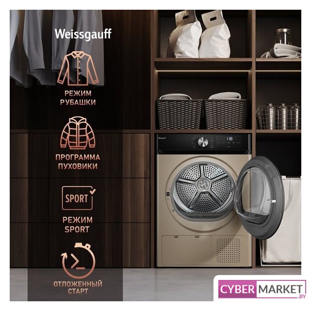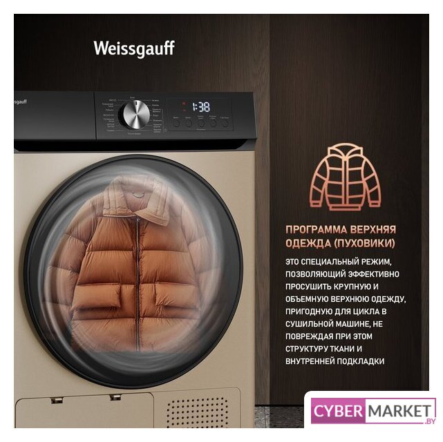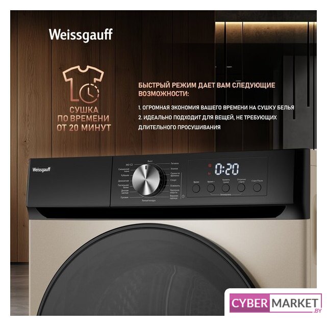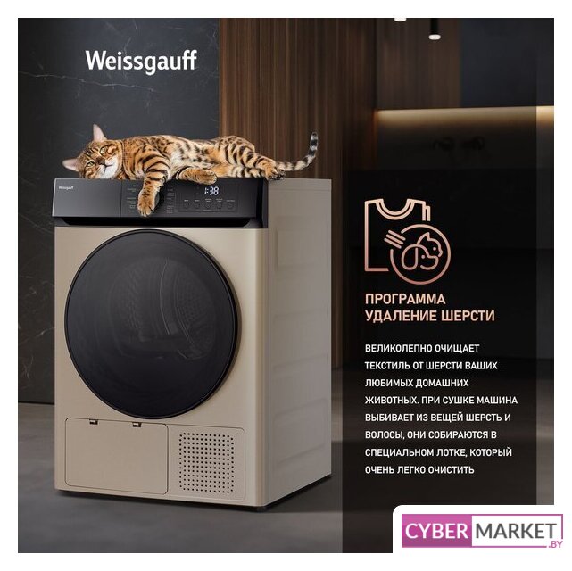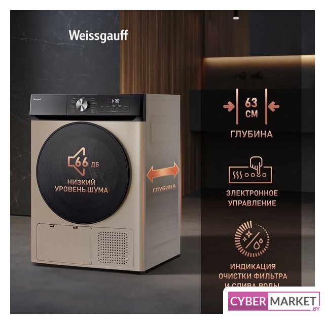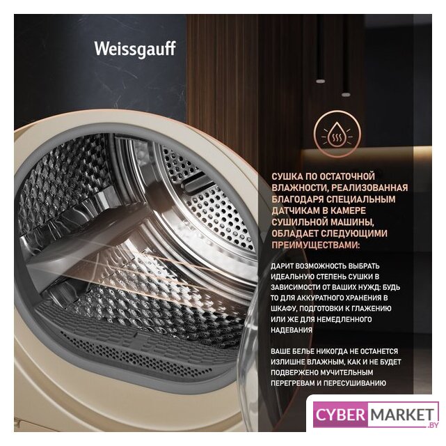 отдельностоящая, сушильная машина, сушка: конденсация с тепловым насосом, загрузка до 10 кг, отжим 1600 об/мин, глубина 63.9 см, энергопотребление A++, 15 программ