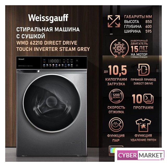 отдельностоящая, стирально-сушильная машина, загрузка до 10.5 кг, отжим 1200 об/мин, глубина 53 см, энергопотребление A+++, 12 программ