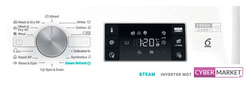 отдельностоящая, стирально-сушильная машина, с паром, загрузка до 9 кг, отжим 1400 об/мин, глубина 56.5 см (с люком 59 см), энергопотребление A, прямой привод, 14 программ, 6 Motion (LG)