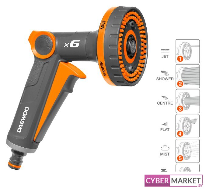 распылитель пистолет, 6 режимов, пластик, с регулировкой расхода, с регулировкой дальности