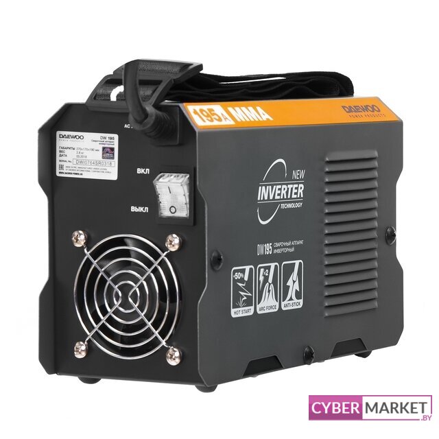 ручная дуговая сварка (MMA)/полуавтоматическая сварка (MIG MAG), входное напряжение 160–220 В, сварочный ток: 20–180 А, диаметр электрода: 1.6–4 мм, 5.1 кг