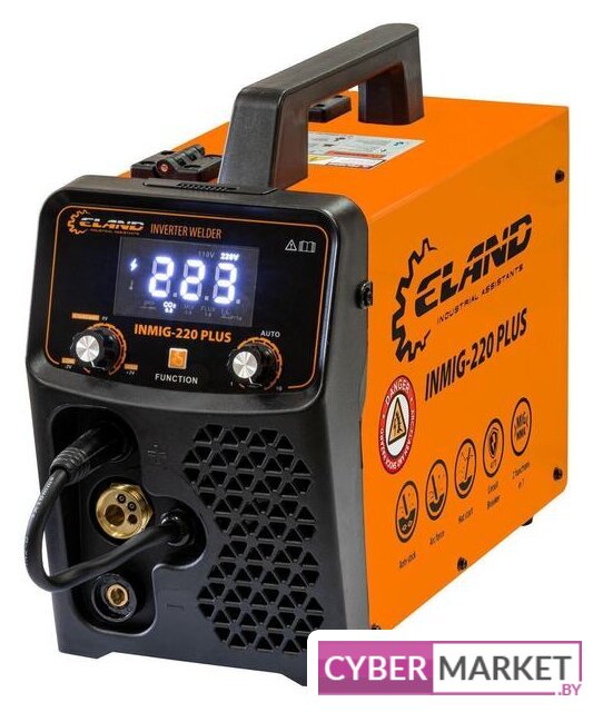 ручная дуговая сварка (MMA)/полуавтоматическая сварка (MIG MAG FCAW)/аргонодуговая сварка (TIG), входное напряжение 220 В, сварочный ток: 10–200 А, диаметр электрода: 1.6–4 мм, 17.5 кг
