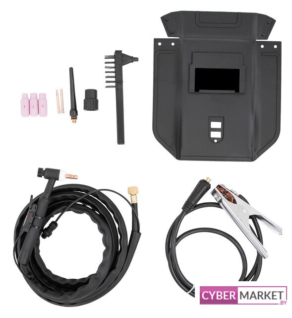 | Комплект поставки | Сварочный щиток, молоток-щетка, TIG горелка 2,5 м., кабель заземления 1,6 м., кабель питания 1,75 м., 3 сменных керамических сопла (№4,5,6) и 2 наконечника для сопла TIG горелки. |