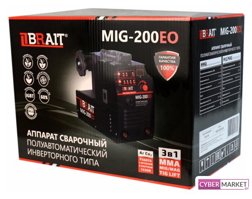 | Комплект поставки | - Инструкция по эксплуатации - Сварочный кабель с держателем электрода- Сварочный кабель с зажимом заземления- Щетка-молоток- Горелка MIG |