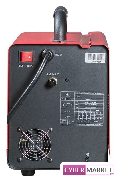 ручная дуговая сварка (MMA)/полуавтоматическая сварка (MIG MAG FCAW)/аргонодуговая сварка (TIG)/плазменная резка (CUT), входное напряжение 220 В, сварочный ток: 20–250 А, диаметр электрода: 1.6–4 мм, 18.5 кг