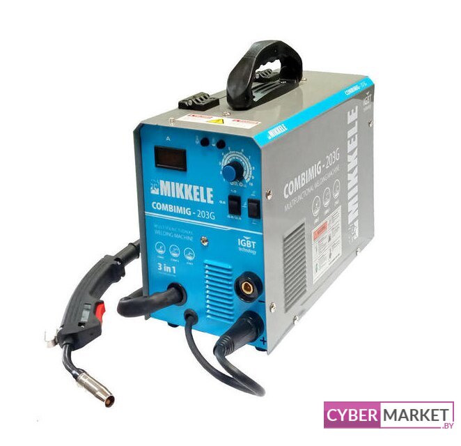 ручная дуговая сварка (MMA)/полуавтоматическая сварка (MIG MAG), 220 В, сварочный ток: 20–200 А, диаметр электрода: 1.6–4 мм, 11.3 кг