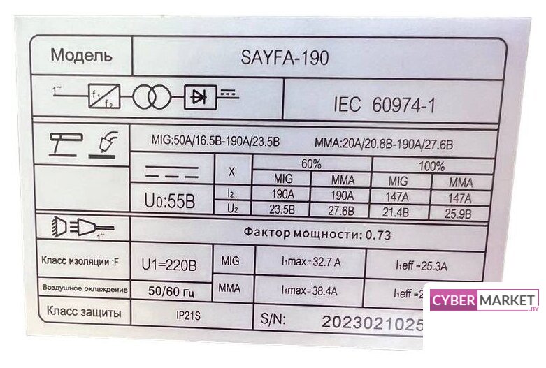 | Назначение | ручная дуговая сварка (MMA), полуавтоматическая сварка (MIG MAG FCAW) |