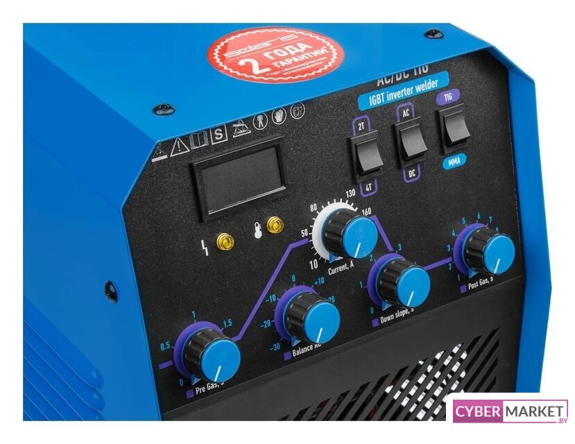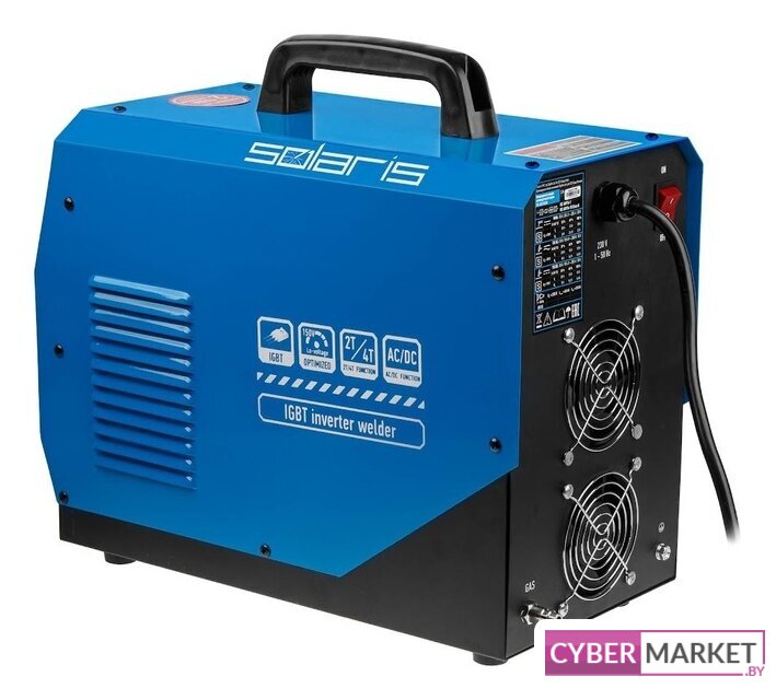 ручная дуговая сварка (MMA)/полуавтоматическая сварка (MIG MAG)/аргонодуговая сварка (TIG), 220 В, сварочный ток: 20–200 А, диаметр электрода: 1.5–4 мм, 9.96 кг