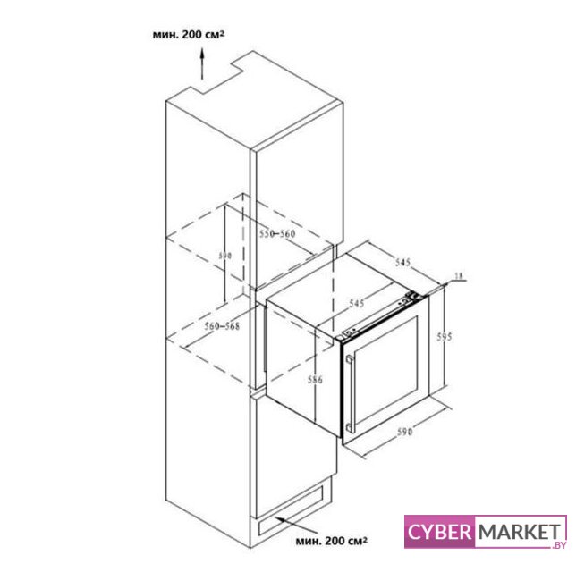 встраиваемый, 2 зоны температуры, 36 бутылок