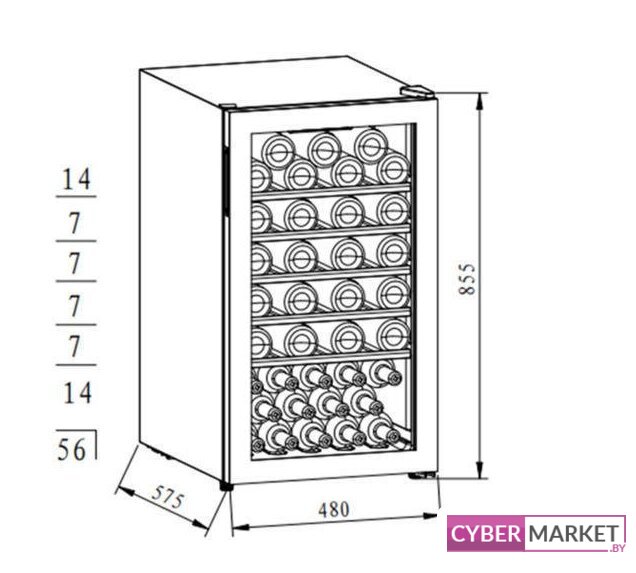 отдельностоящий, 1 зона температуры, 34 бутылки
