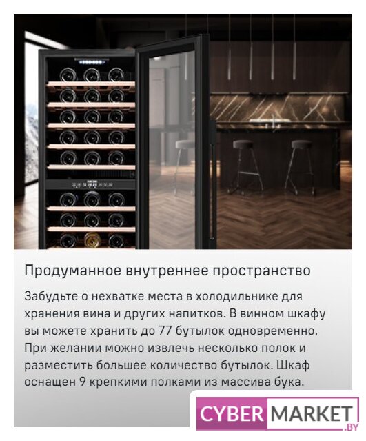 отдельностоящий, 2 зоны температуры, 77 бутылок