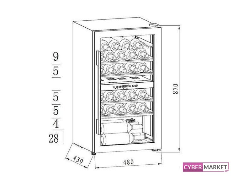 встраиваемый, 1 зона температуры, 28 бутылок