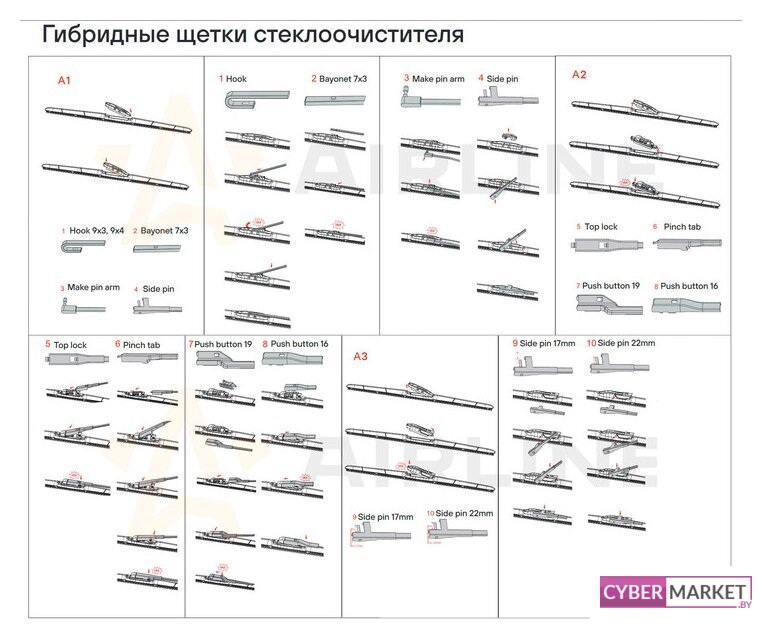 щетка стеклоочистителя, гибридная, крепление спереди, вид крепления: Hook (крючок), 330 мм