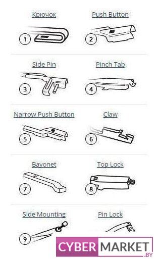 | Вид крепления | Pinch Tab (Боковой зажим), Side Pin (Боковой штырь), Top Lock (Верхний замок) |