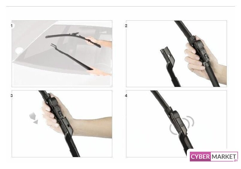 щетки стеклоочистителя, бескаркасная, крепление спереди, вид крепления: Pinch Tab (Боковой зажим), 475 мм/500 мм