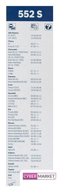 щетки стеклоочистителя, каркасная, крепление спереди, вид крепления: Hook (крючок), 530 мм/500 мм