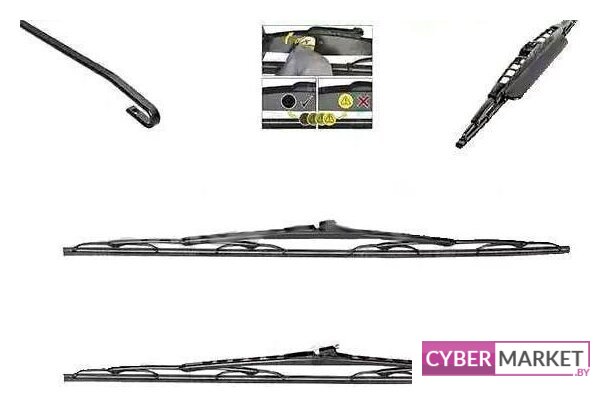 щетка стеклоочистителя, бескаркасная, крепление спереди, 650 мм/580 мм