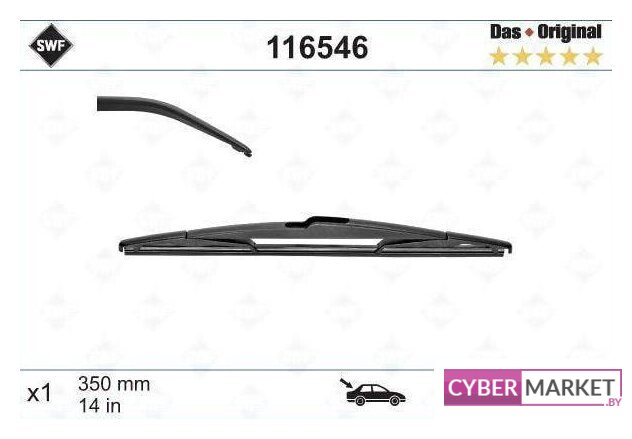 щетка стеклоочистителя, каркасная, крепление сзади, вид крепления: специальное, 380 мм