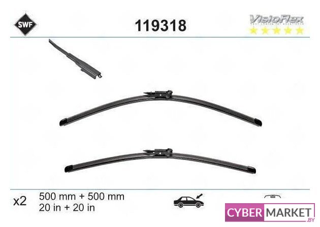 щетки стеклоочистителя, бескаркасная, крепление спереди, вид крепления: Side Pin (Боковой штырь), 530 мм/530 мм