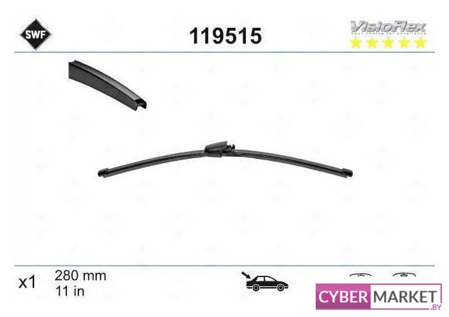 щетка стеклоочистителя, каркасная, крепление сзади, вид крепления: специальное, 280 мм