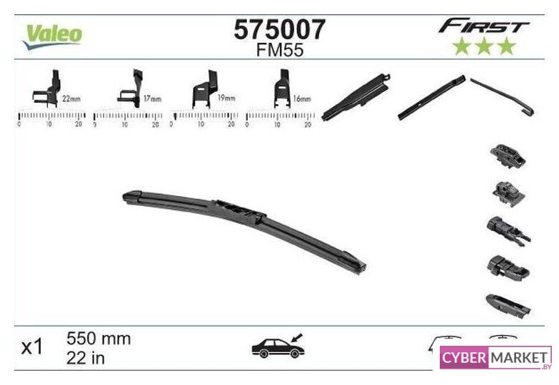 щетка стеклоочистителя, каркасная, крепление сзади, вид крепления: Bayonet (Штыковой замок)/Pinch Tab (Боковой зажим)/Top Lock (Верхний замок)/Claw, 510 мм