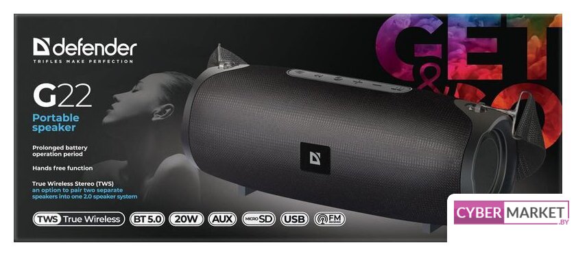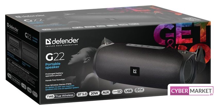 номинальная мощность 16 Вт, воспроизведение с USB/microSD, питание от аккумулятора, BT 5.0, AUX, время работы: 10 ч.