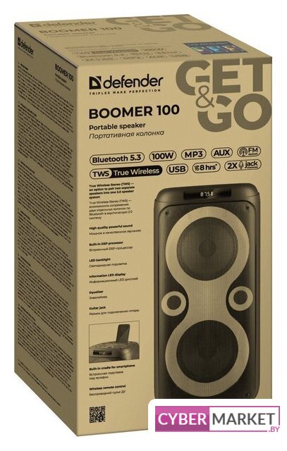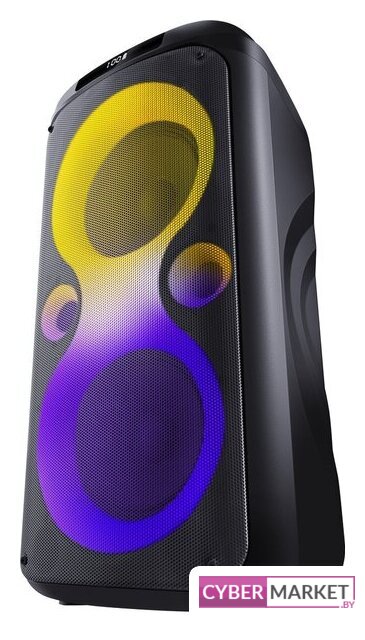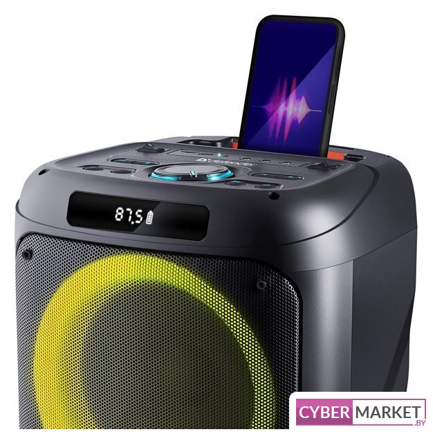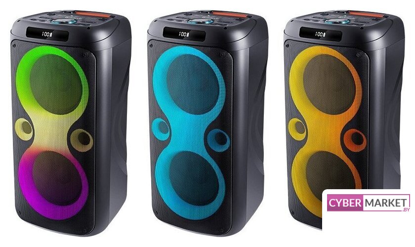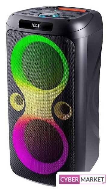 номинальная мощность 60 Вт, воспроизведение с USB/microSD, питание от аккумулятора, BT 5.3, AUX, время работы: 5 ч.