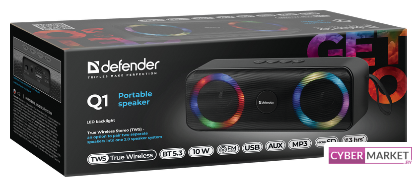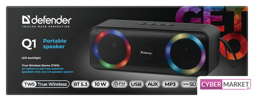 номинальная мощность 5 Вт, воспроизведение с USB/microSD, питание от аккумулятора, BT 5.3, время работы: 9 ч.