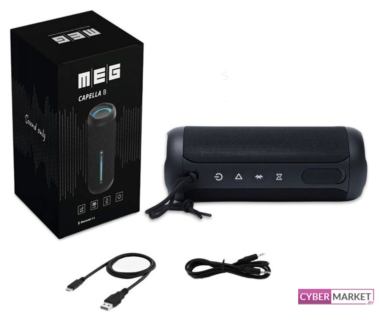 номинальная мощность 40 Вт, питание от аккумулятора, BT 5.3, AUX, влагозащита IP67, время работы: 20 ч.